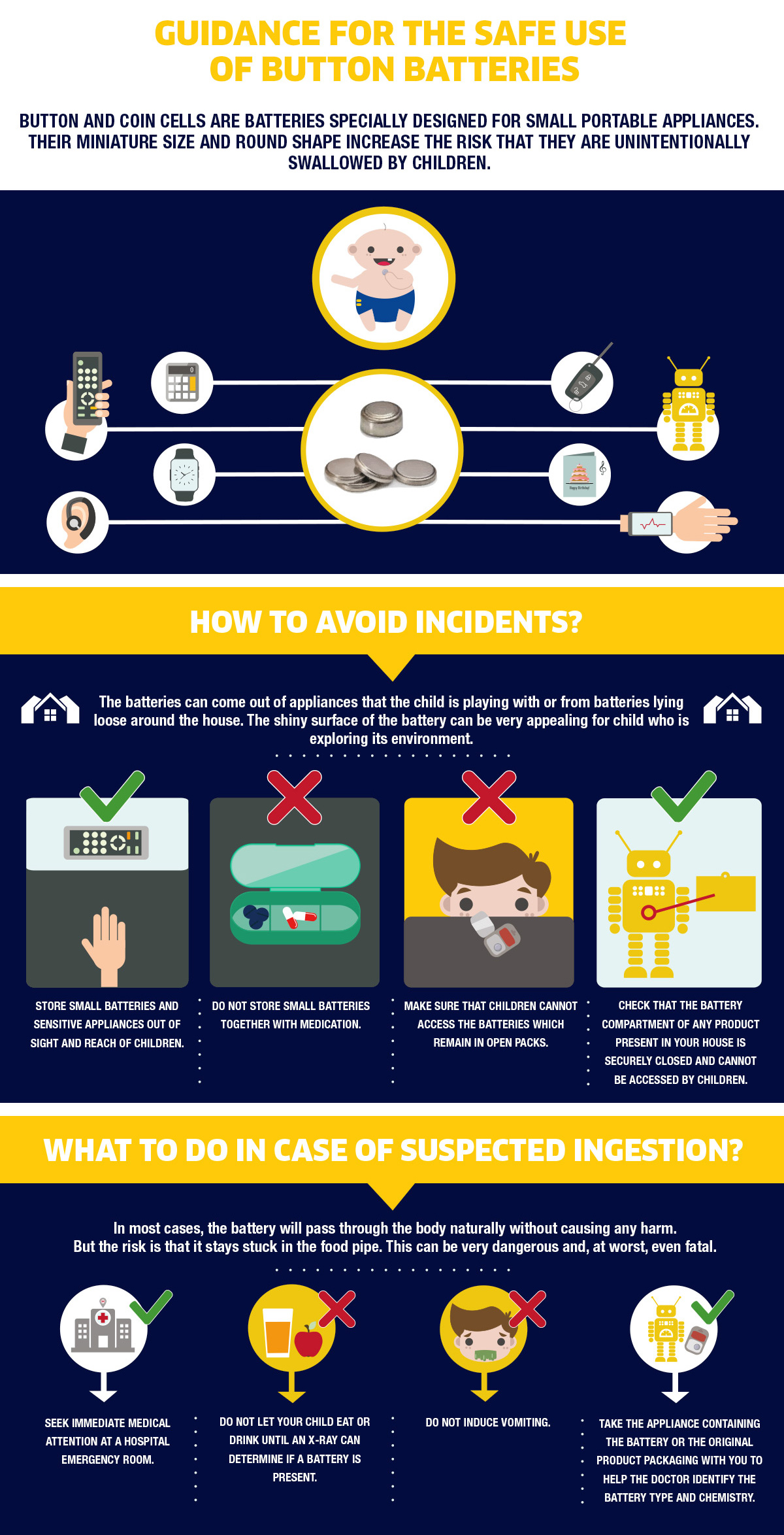 Since they are especially designed to power small devices, button cells are quite small in size themselves. Therefore, the risk is high that children could swallow them unintentionally. The EPBA and its members are committed to reduce this risk by providing information and thereby enhancing awareness.