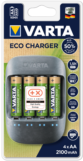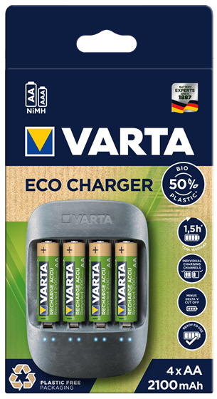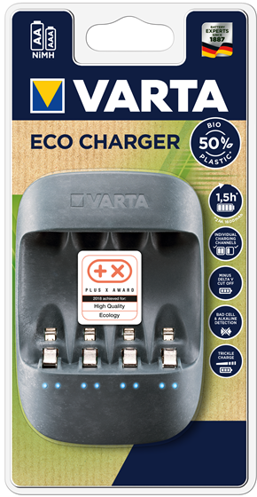 Environmental friendly charger made from 50% bioplastic in an ergonomic and modern design.
