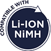 * Compatible with Li-Ion Rechargeable Batteries with plus pole nubbin – no flat top