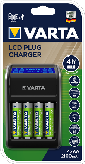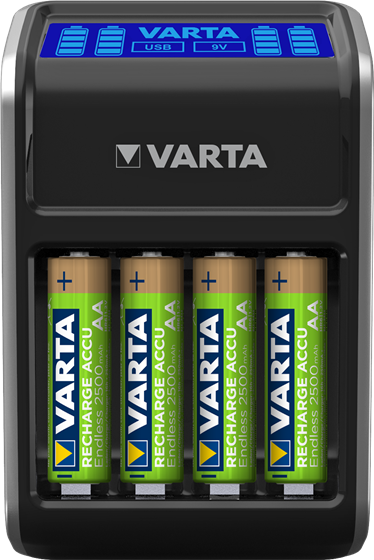 - LED backlit blue LCD display: charging level, 9V and USB indication