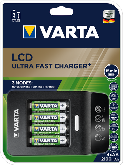 - Charges up to 4 AA, AAA - charging time: 15 minutes*