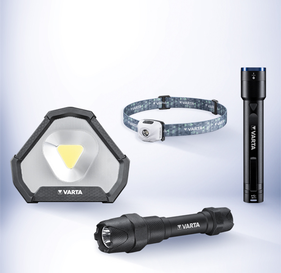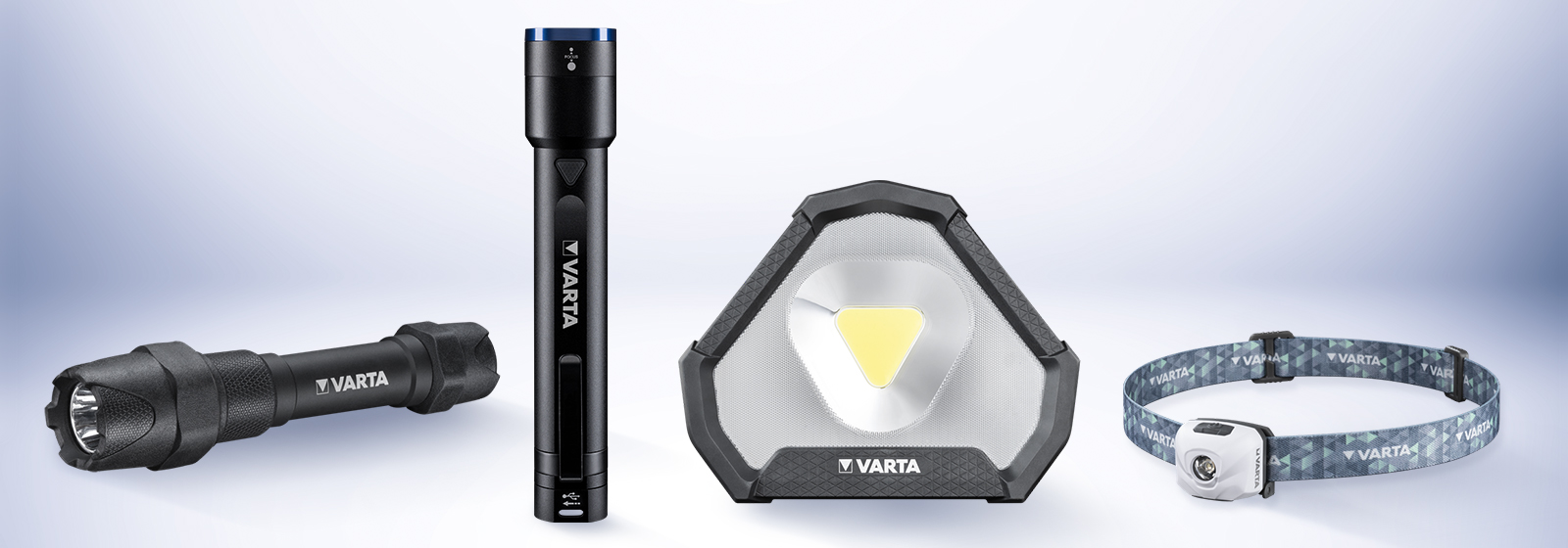 VARTA flashlights are perfect for any situation – at home, at work or on your outdoor adventures. Therefore, our lights range covers flashlights, head lights, camping lanterns, beam lanterns, key chain lights and helpful gadgets – from price entry level to premium prices, from lightweight to extremely robust, offering a variety of sizes.