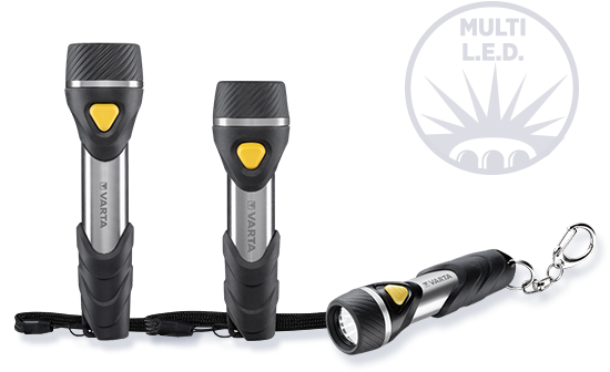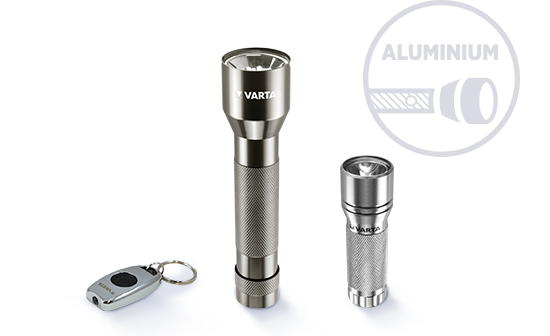 Elegant and durable classics! The VARTA Aluminium range is classic, elegant and robust at the same time. It is equipped with Multi-LEDs and shows practical features such as aluminium casing with textured housing surface for maximum grip.