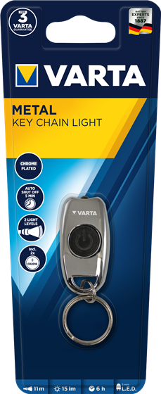 Ultra compact key chain light made of high grade, chrome-plated zinc alloy