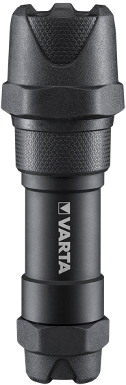 Extremely robust (9 m drop test) flashlight with a shock-absorbing rubberized head and end cap