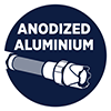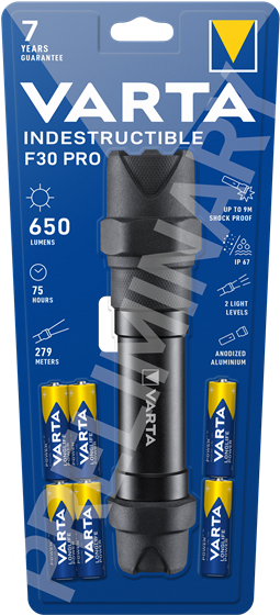 Extremely robust (9 m drop test) flashlight with a shock-absorbing rubberized head and end cap