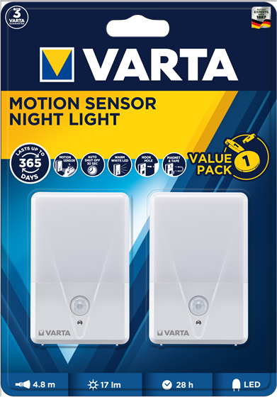 Available in two packaging variants: single blister (incl. batteries) and twin pack (w/o batteries)