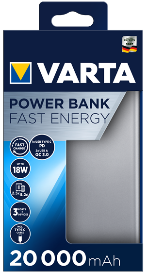 *Hours of time are based on the Samsung Galaxy S9 battery specification on samsung.com to the VARTA Power Bank Energy batteries. Performance may vary by device.