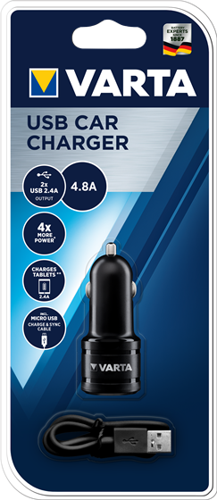 - Features dual USB ports to charge two devices simultaneously (2.4A + 2.4A)