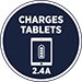 - Charges most USB devices at maximum speed via 2.4 port, including tablets