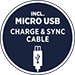 - Micro USB charge & sync cable with a length of 1 m included