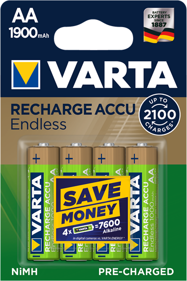 Rechargeable batteries with the highest number of charging cycles for all kind of applications and the daily energy demand. Pre-charged technology for immediate usage and very low self-discharge.